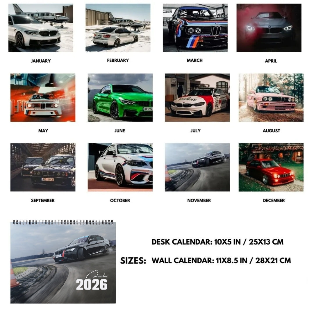Whether you need a sleek desk calendar for your workspace or a bold wall calendar to showcase BMW’s finest designs, we offer both formats to fit your space perfectly.
