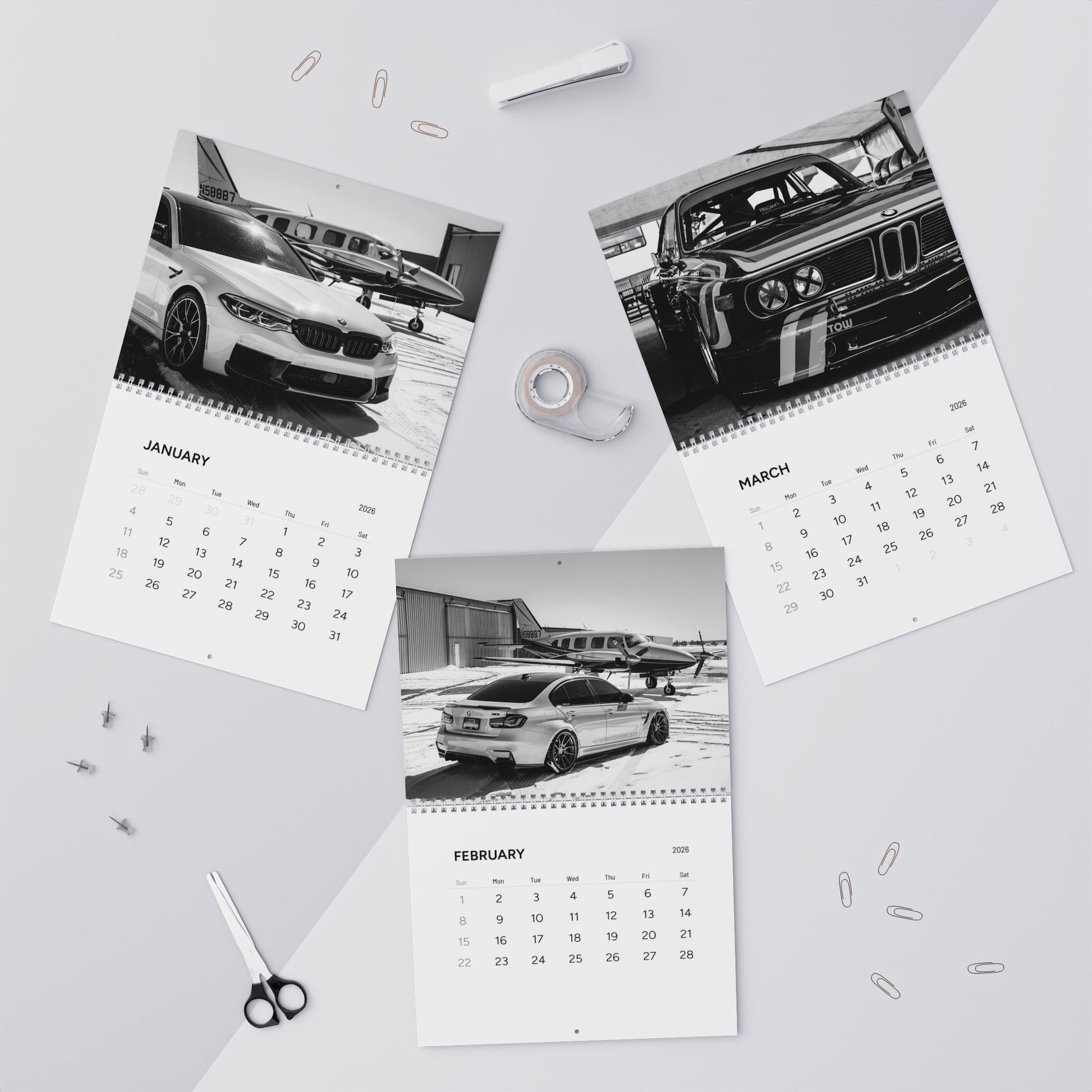 Customize your calendar to match your decor! Opt for a colorful edition that brings BMW’s dynamic designs to life, or choose a timeless black and white version that emphasizes the clean, minimalist beauty of these cars.