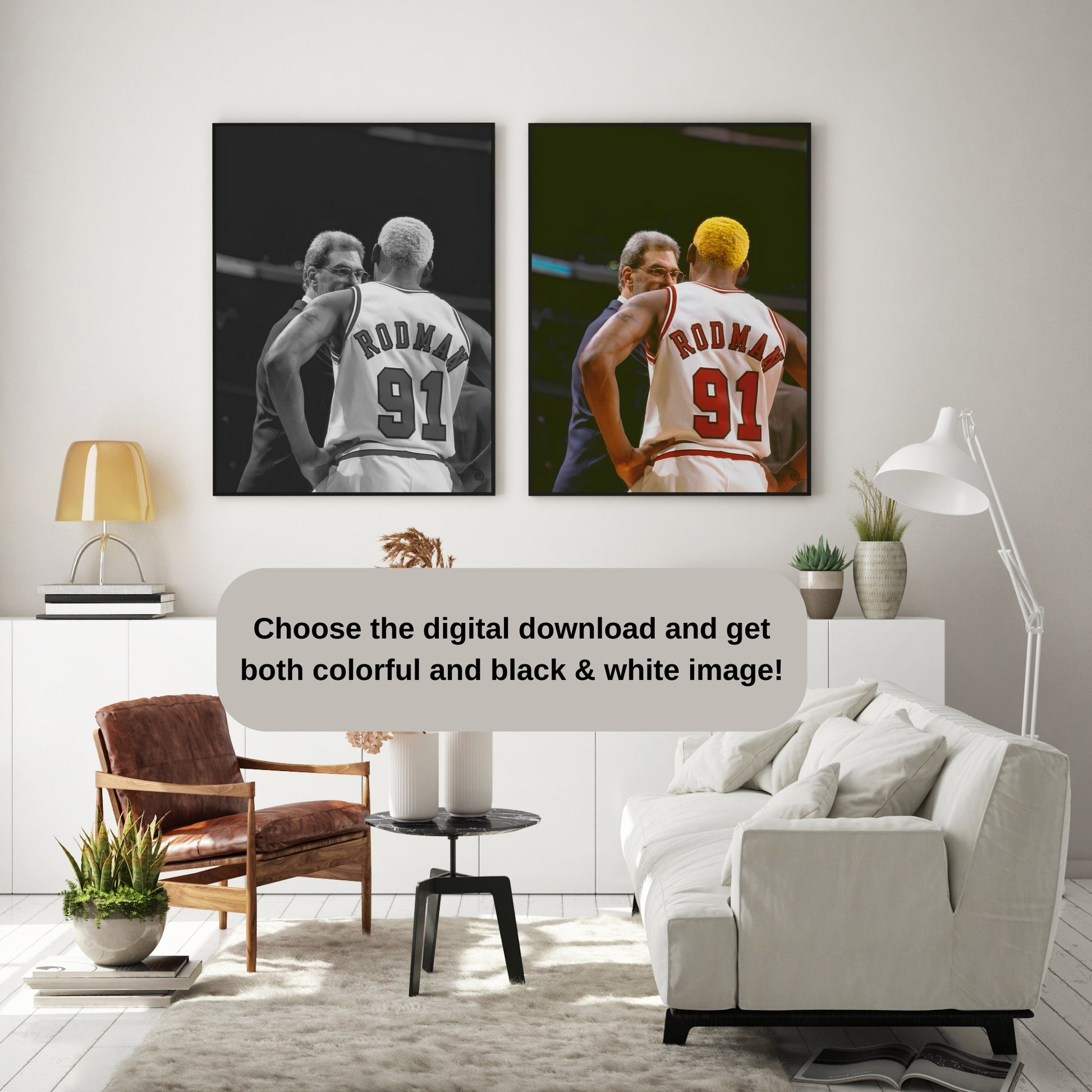Tailor your basketball poster to match your style preference! Choose between a vibrant, colorful rendition that captures the excitement of the game or a classic black and white version for timeless elegance.