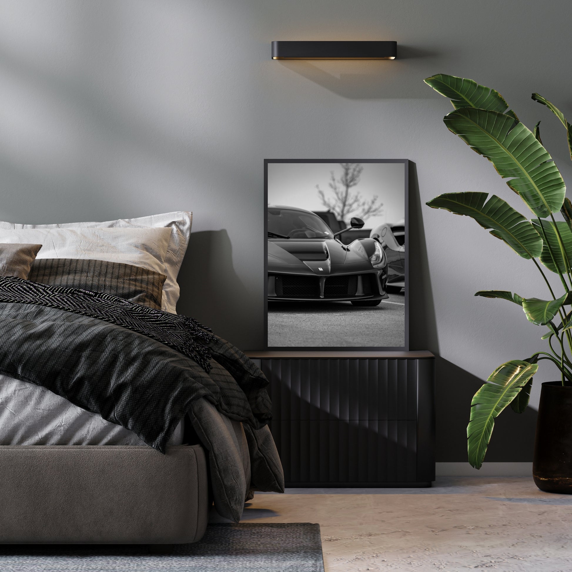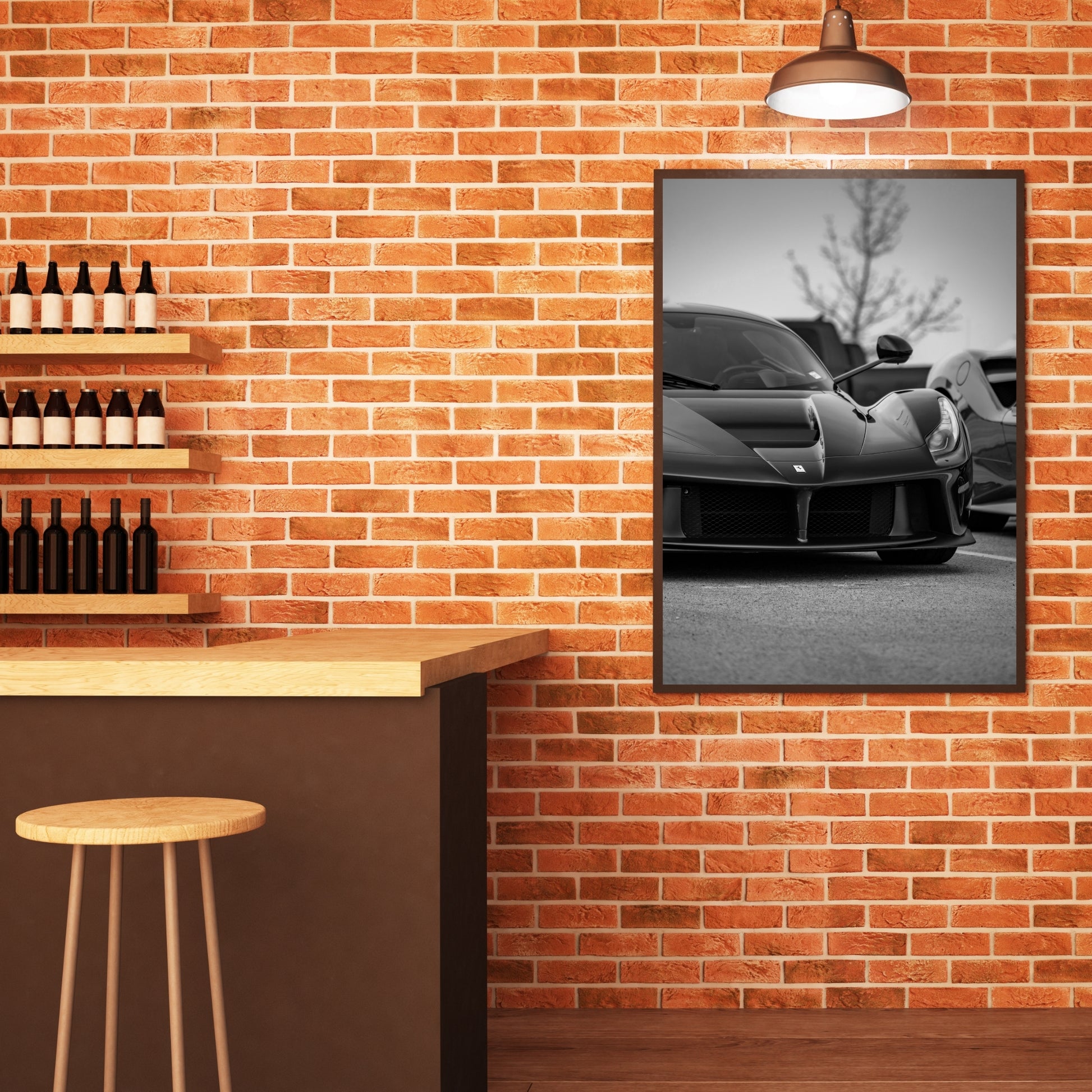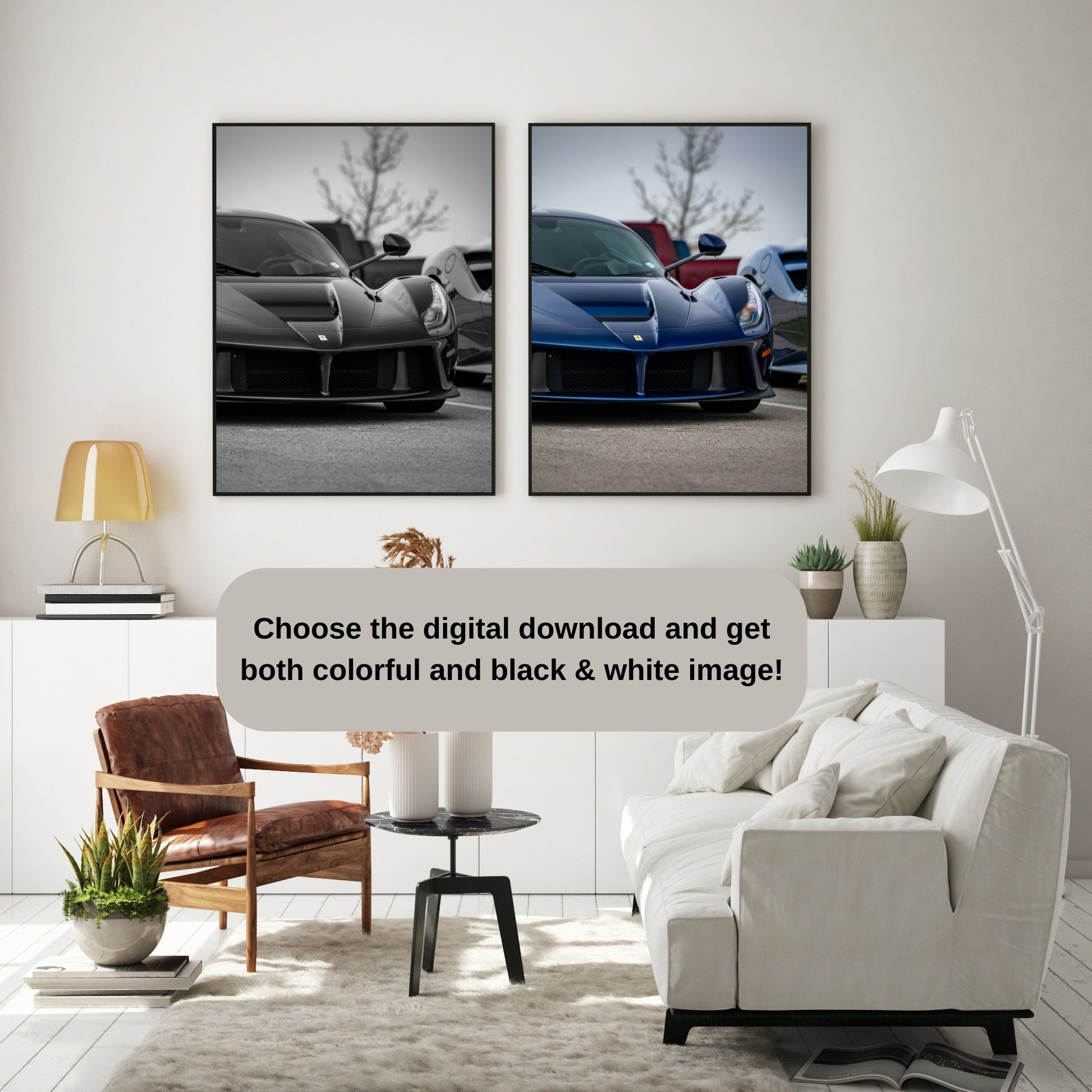 Tailor your Ferrari poster to match your decor style! Opt for a colorful rendition that captures the car's vibrant exterior and dynamic design, or choose a classic black and white version for a timeless automotive aesthetic.